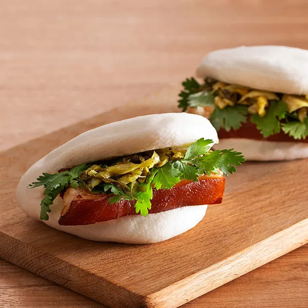 【蒸】用中火蒸刈包約10-15分鐘即可享用【加入餡料】將所用的配料事先調理準備好夾入以蒸熱的刈包皮內即可享用